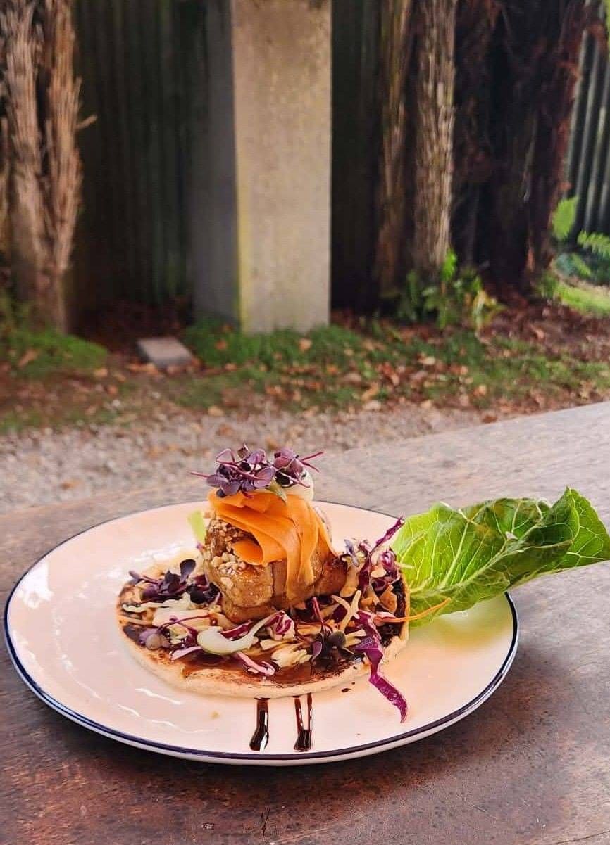 cream cheese. hot smoked salmon. capers. roasted red onion. rocket. lemon dressing. GFO | DFO | VEG